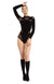 Tight high neck body made of soft stretch velvet. The contrasting sheer and opaque panels create a beautiful complex design. Closes with small golden body snaps.