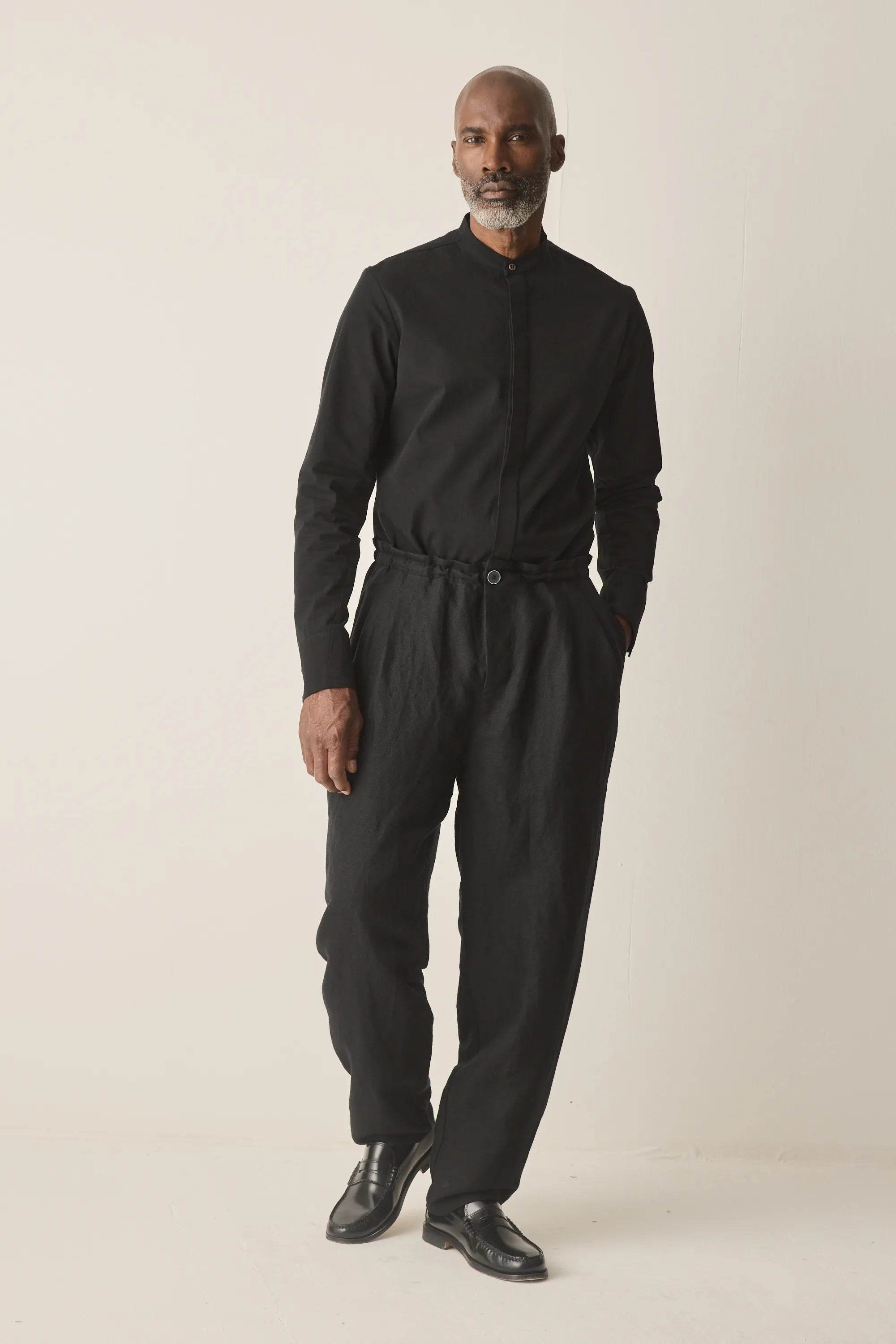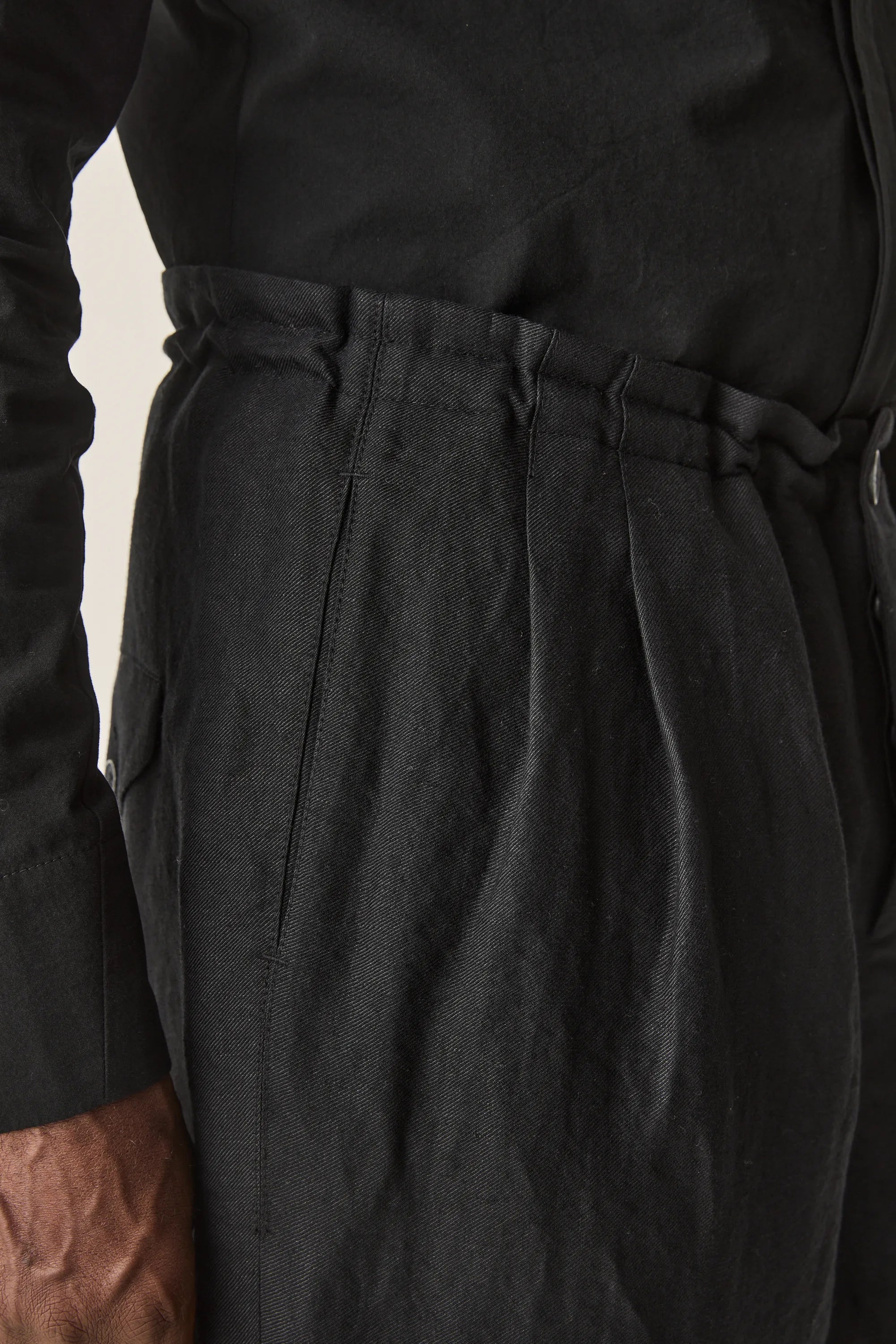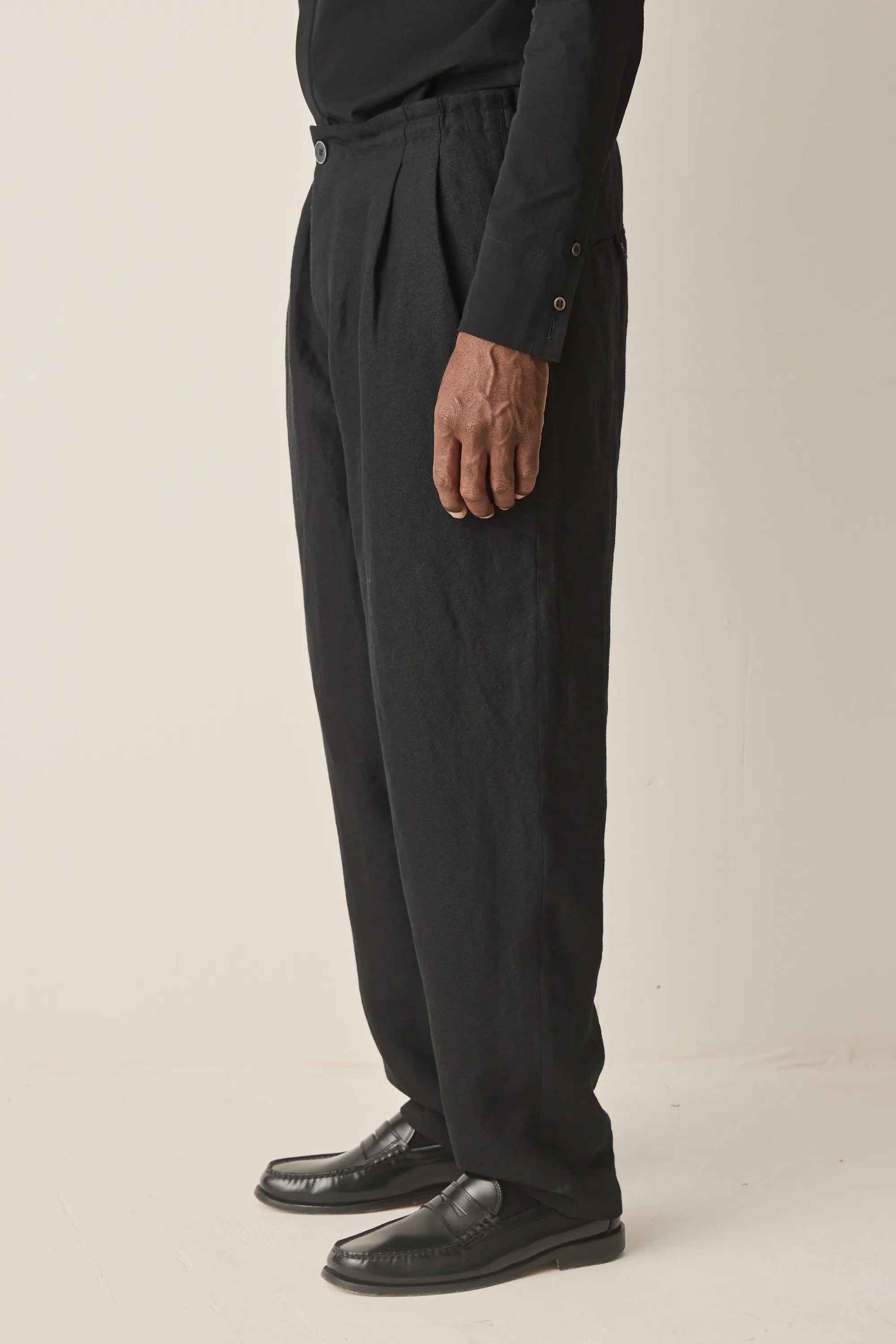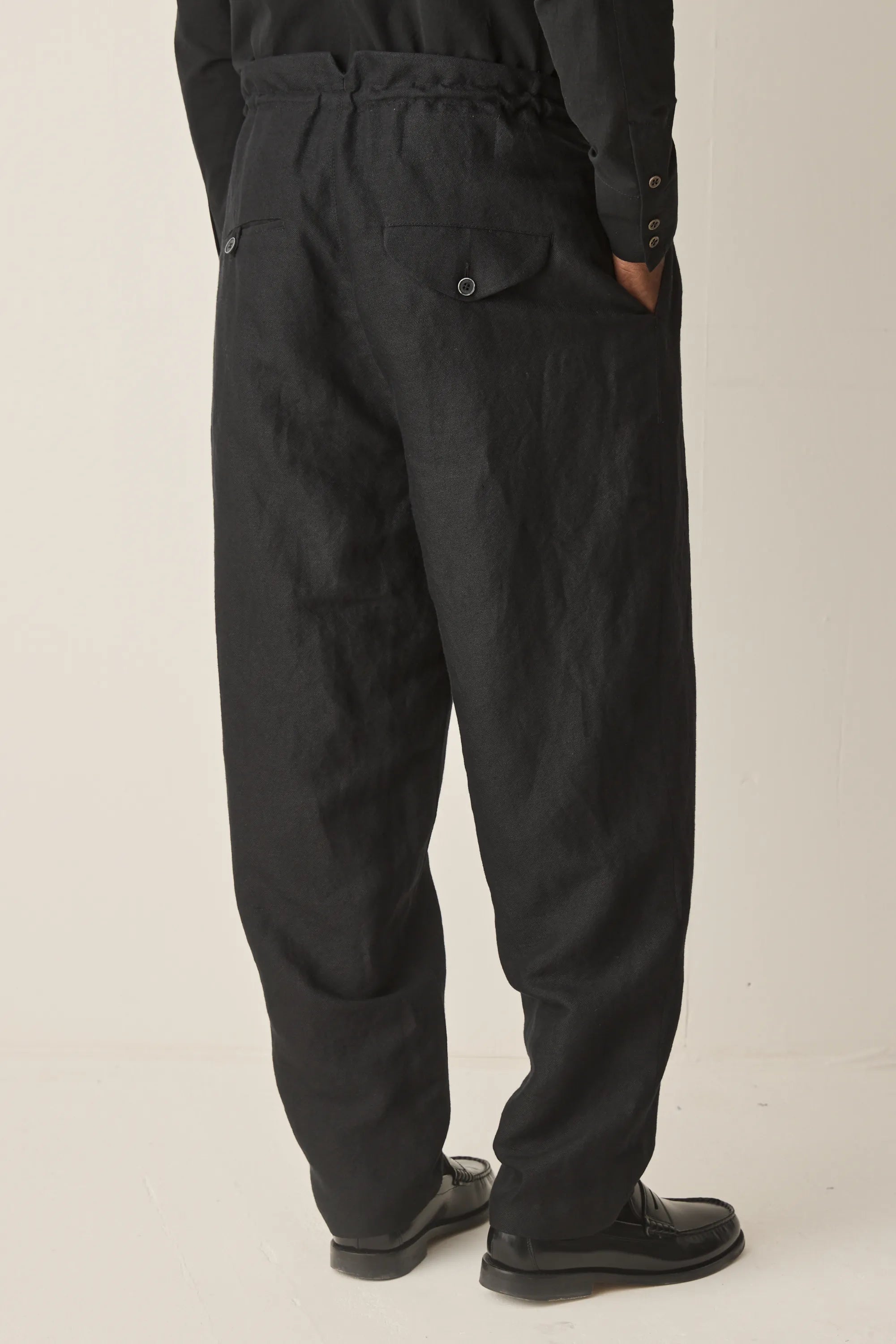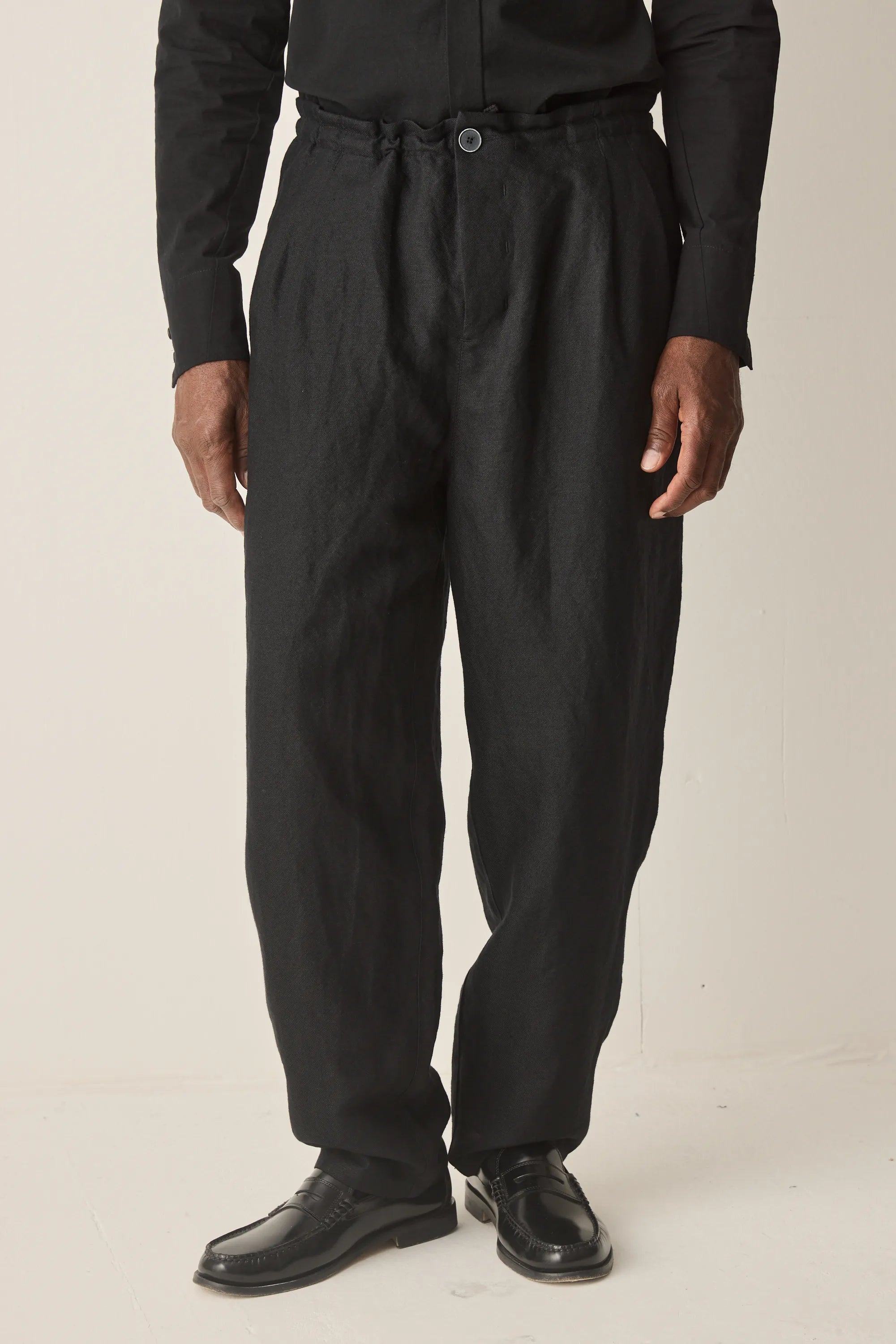 Loose-fitting trousers with internal drawstring made from Italian linen wool mix