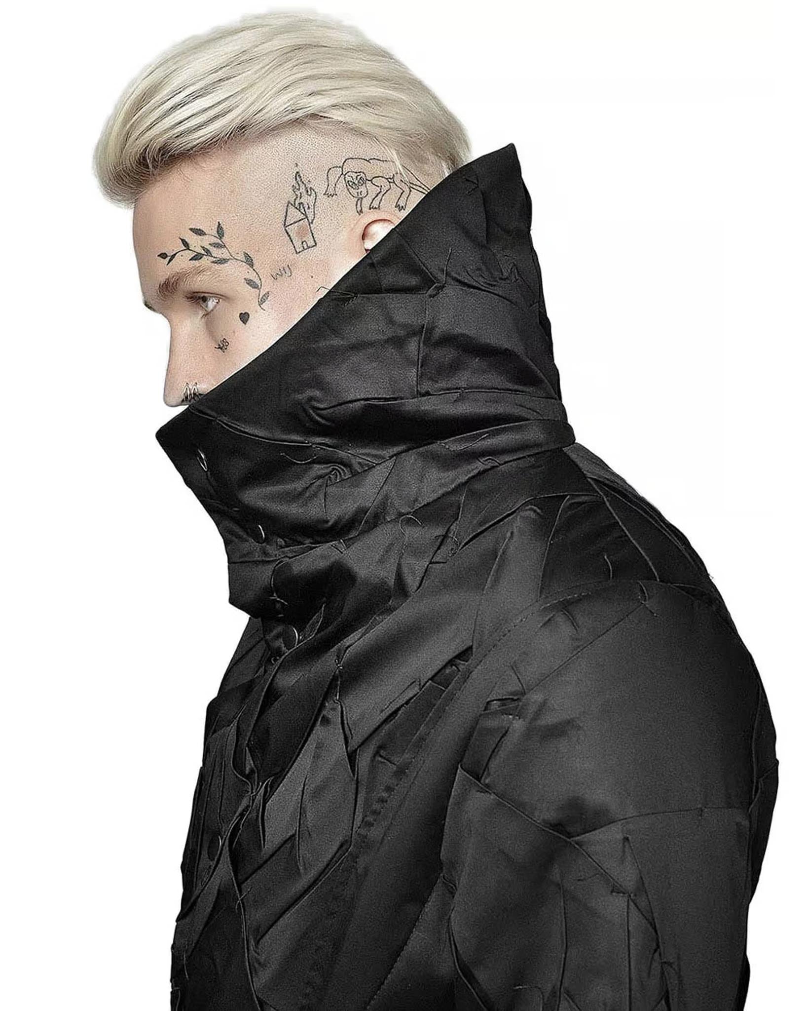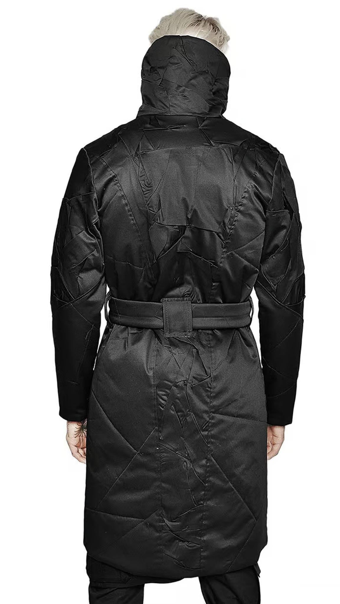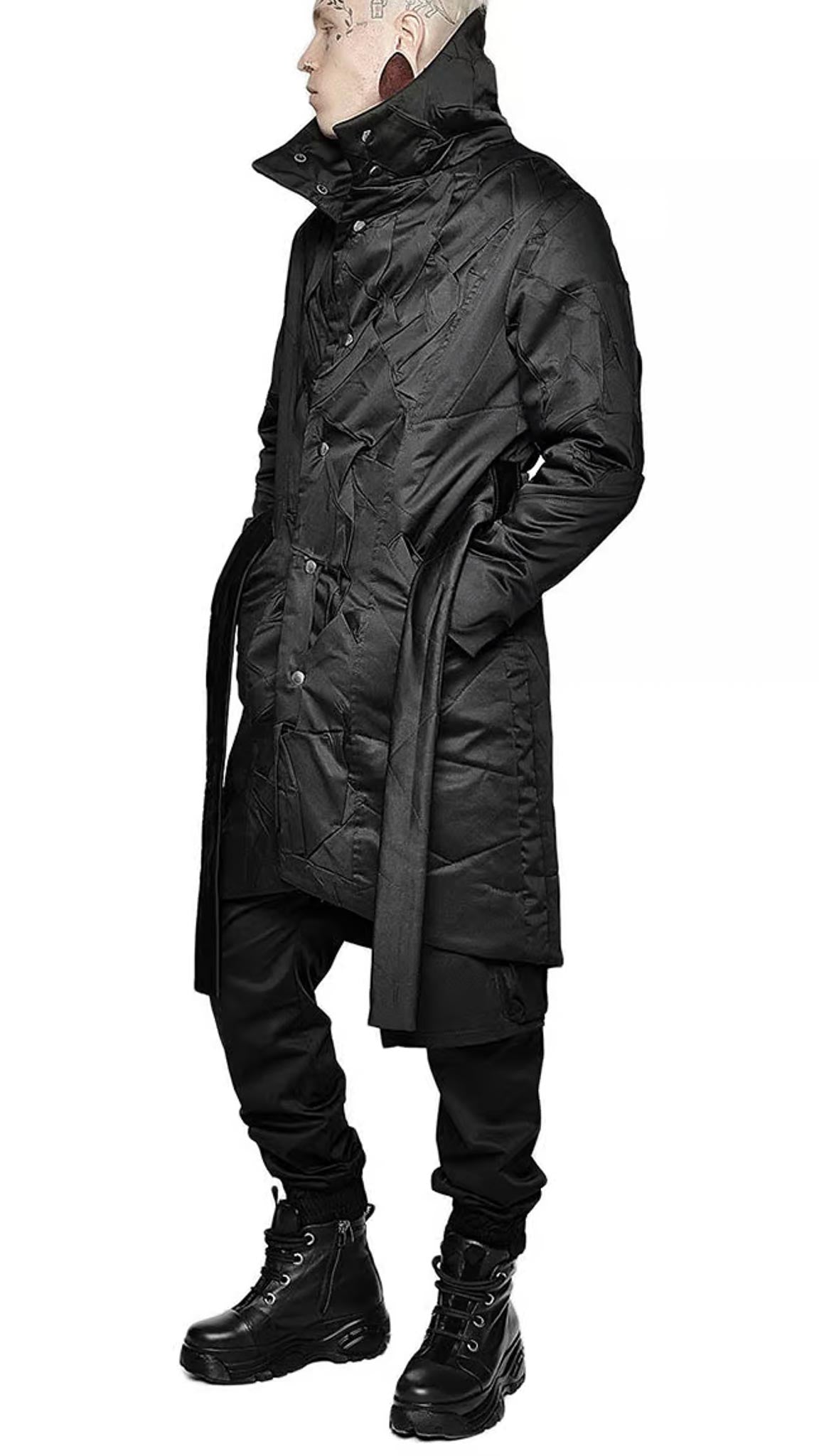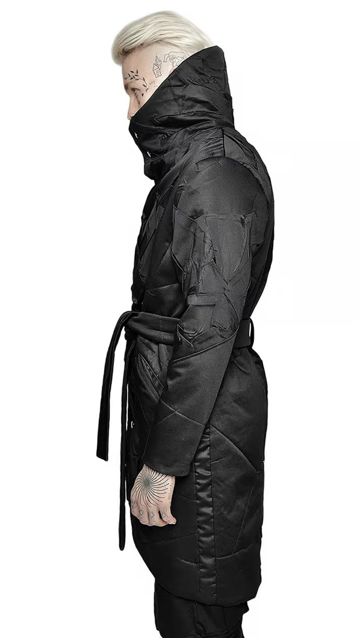 MINOAR - CRUSHED HIGH NECK WRAPPER COAT, IN BLACK