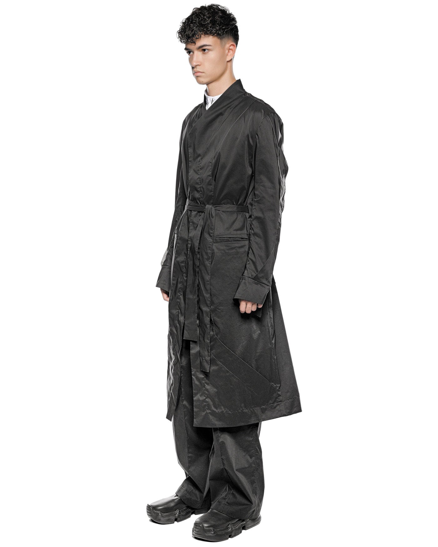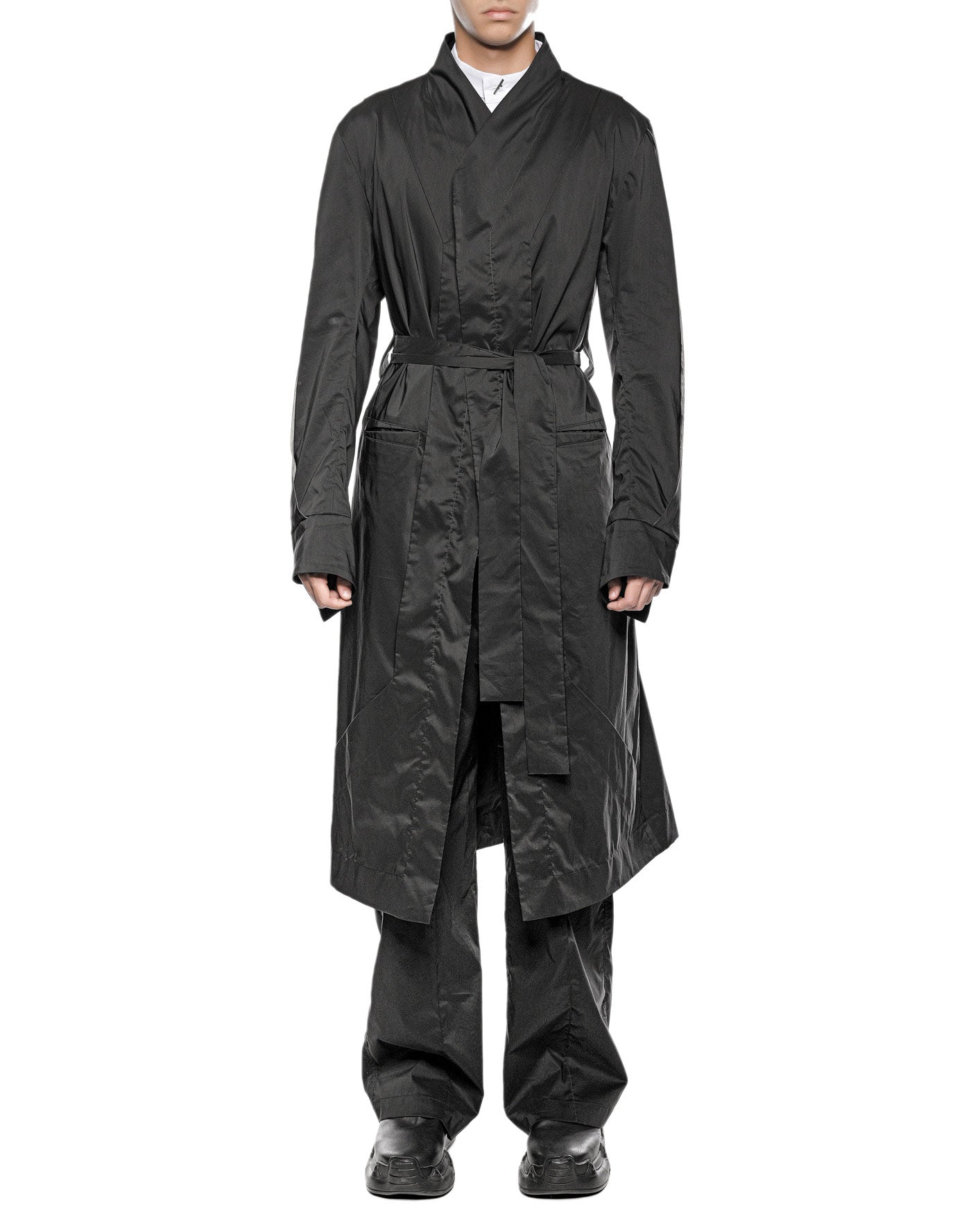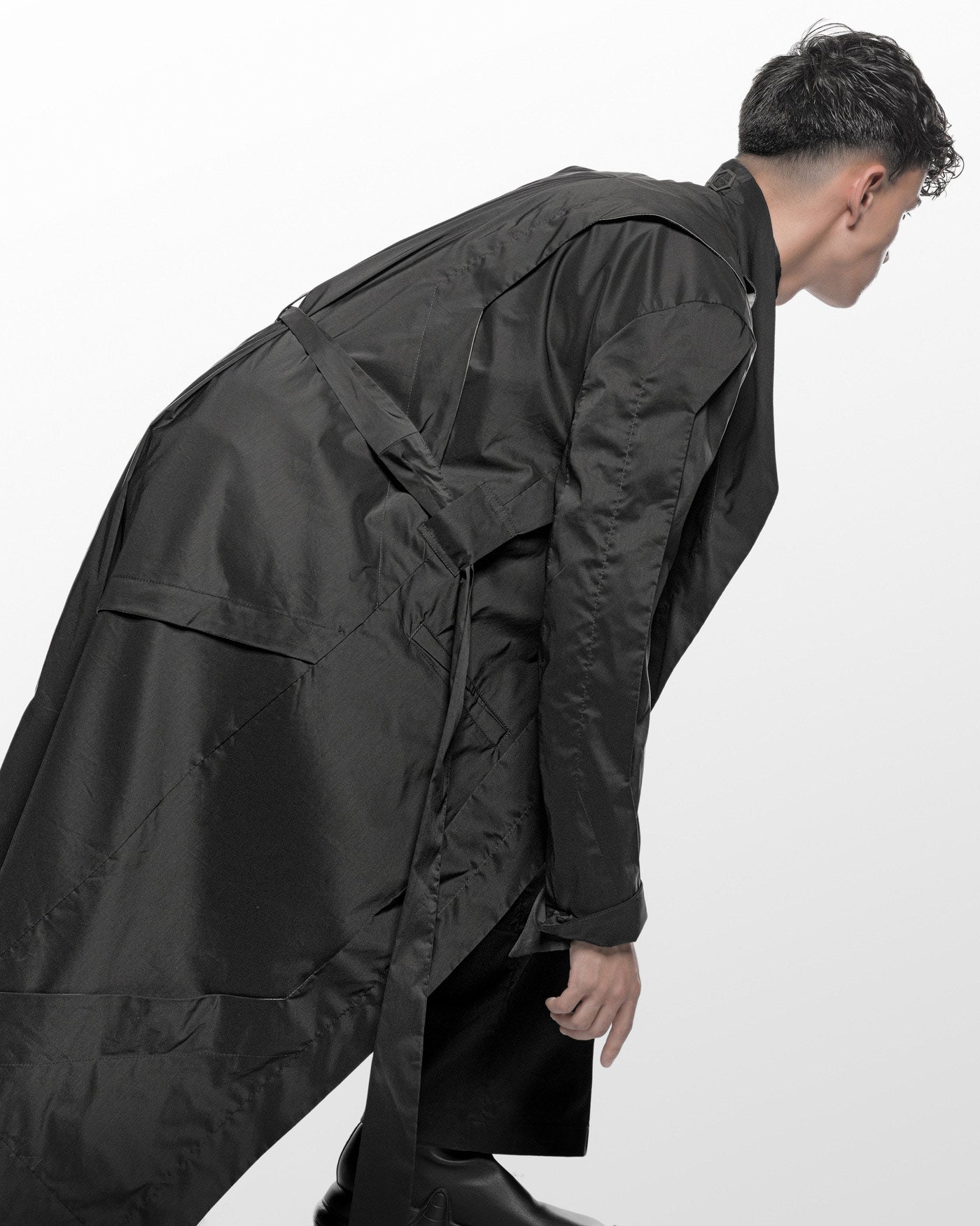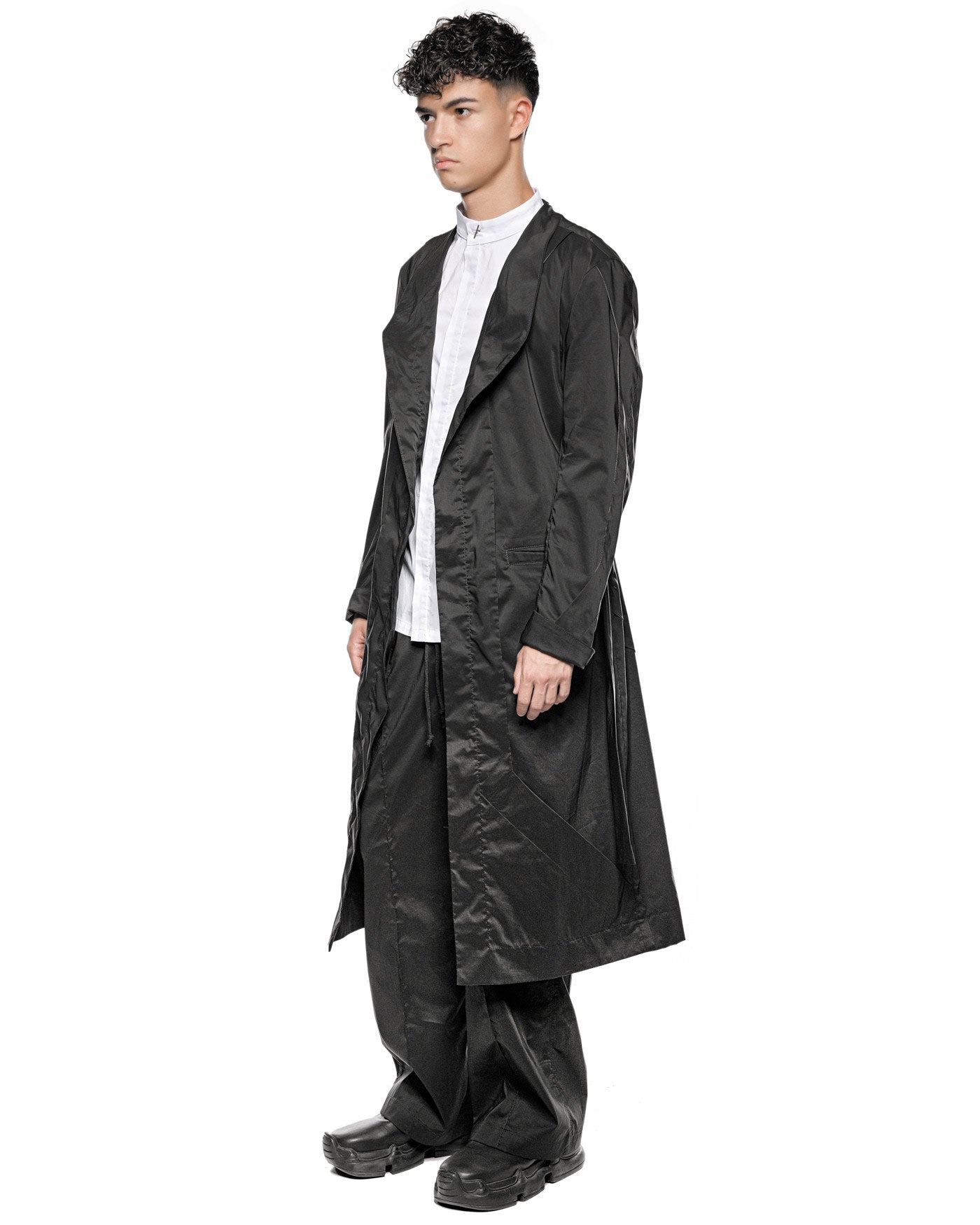 MINOAR - GRAVITY DECONSTRUCT TRENCH COAT, IN BLACK
