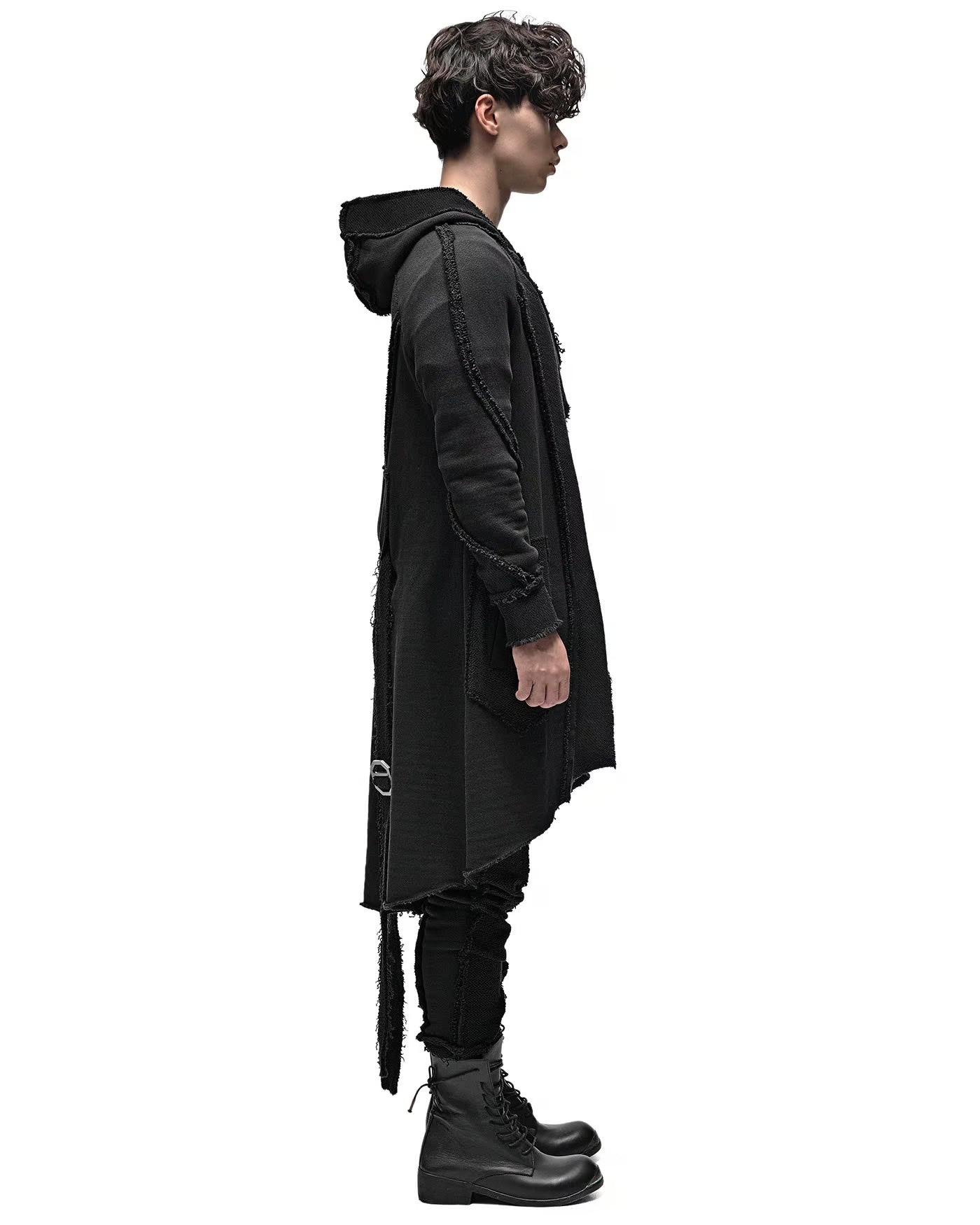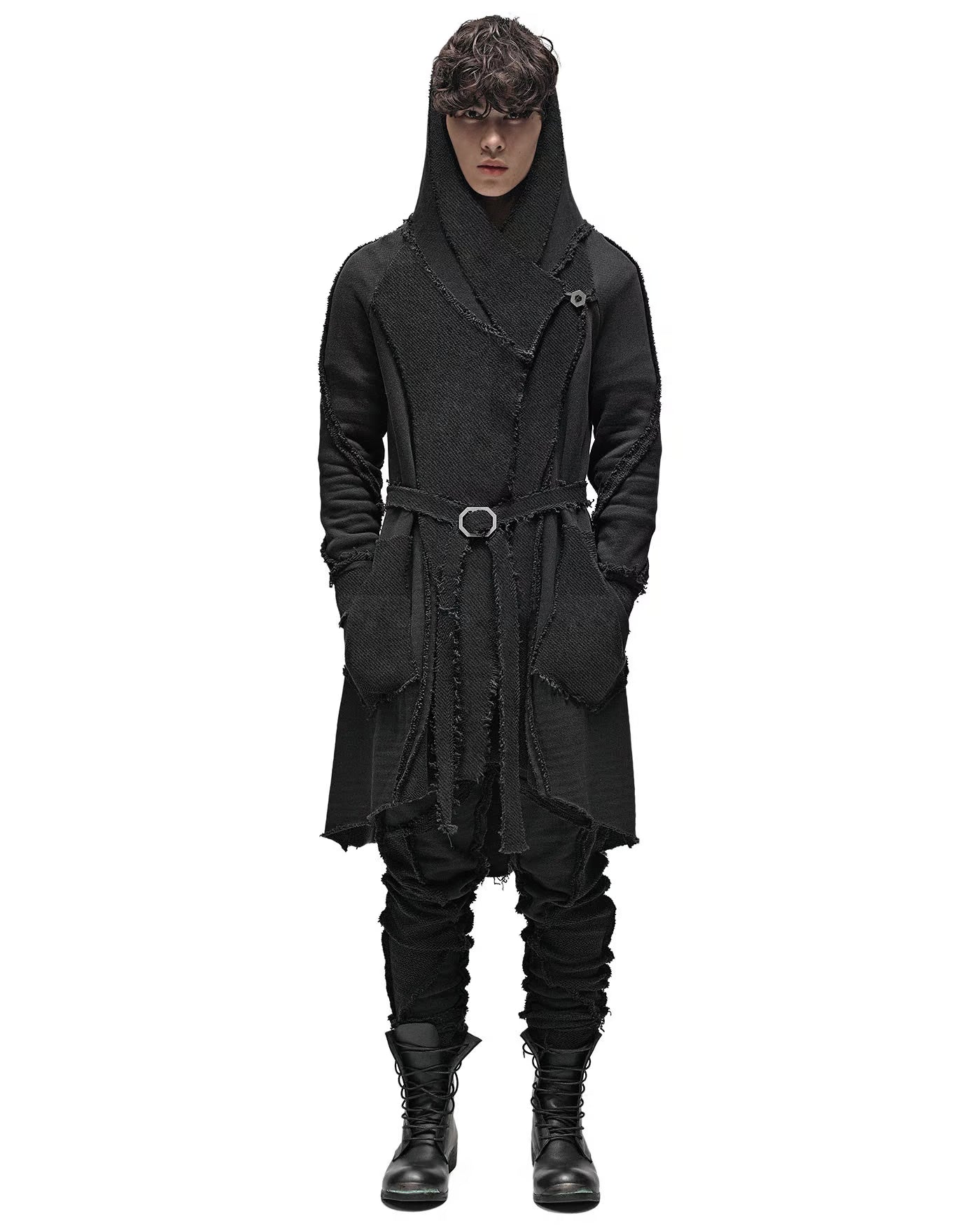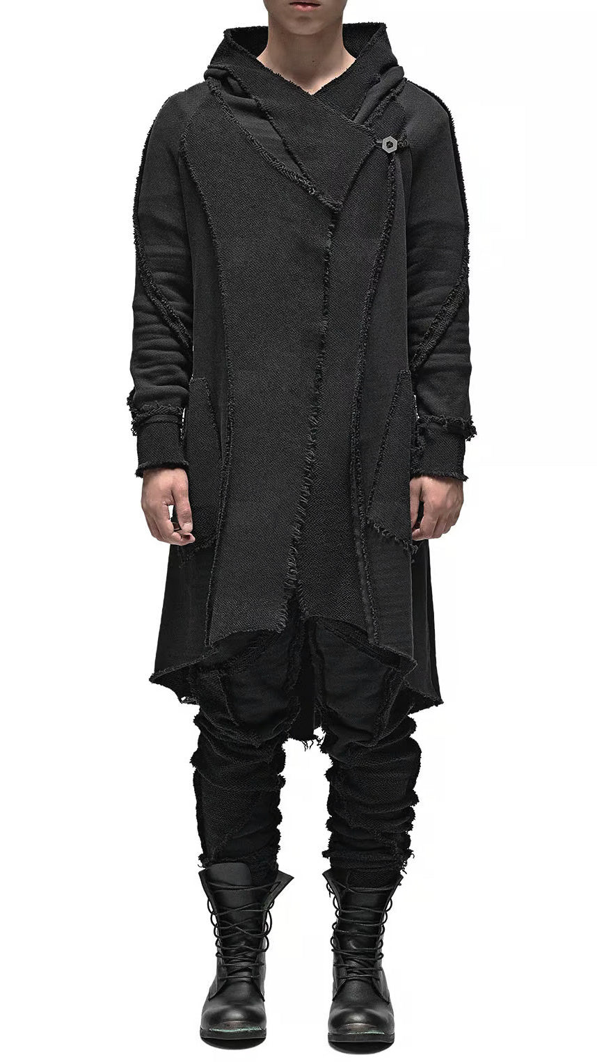 MINOAR - REVERSE EDGE HOOD BUCKLE CARDIGAN, IN BLACK