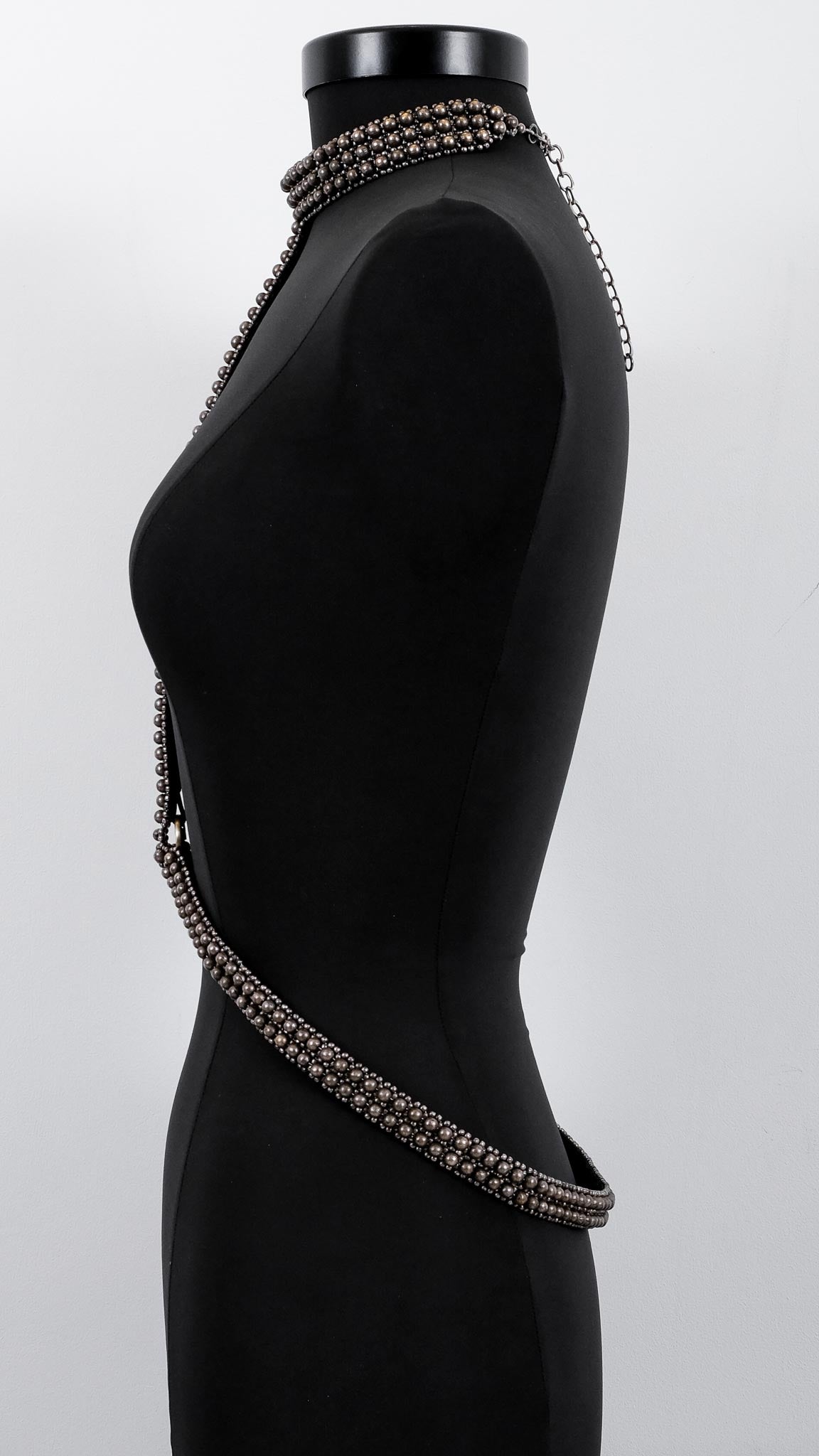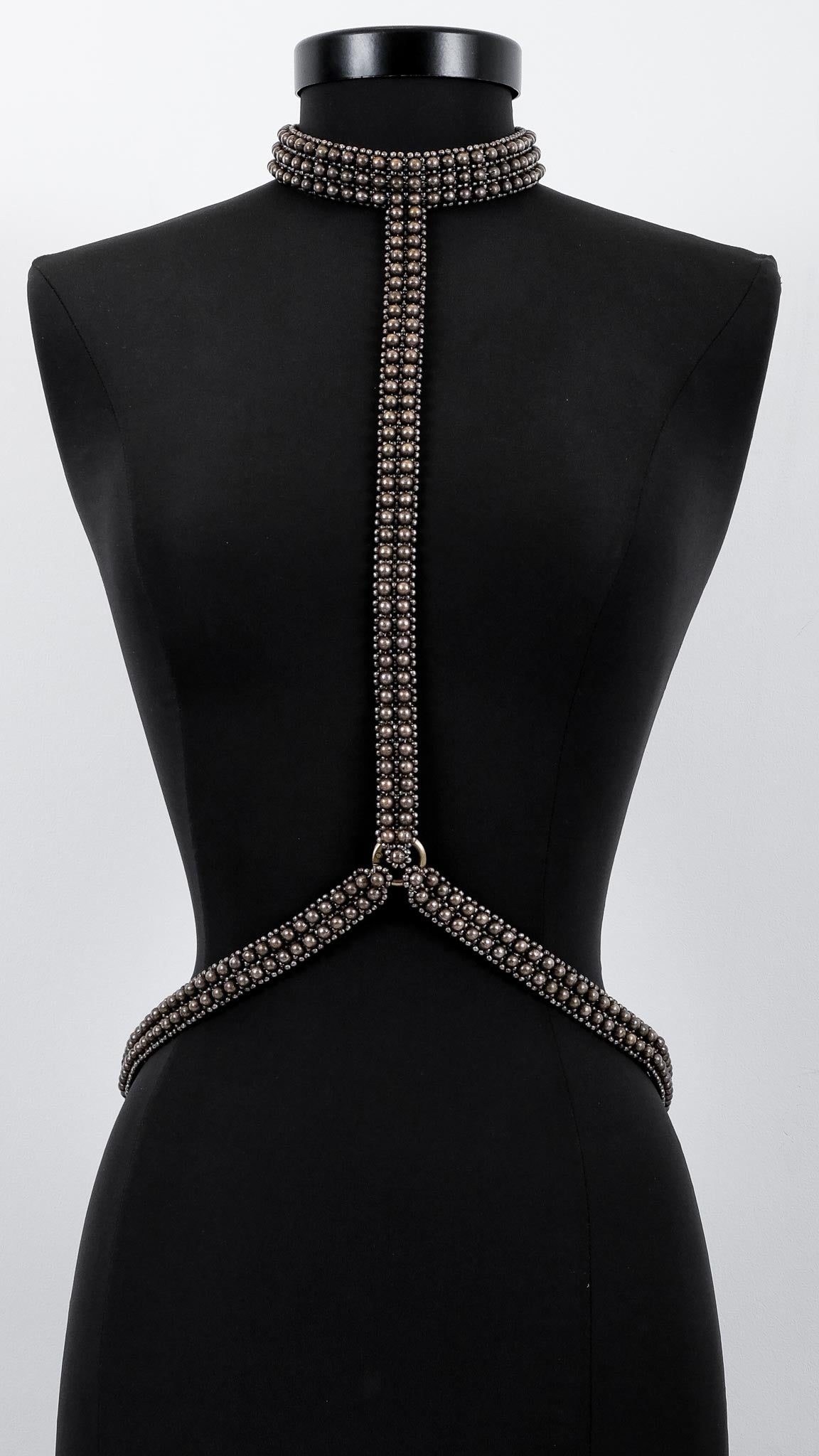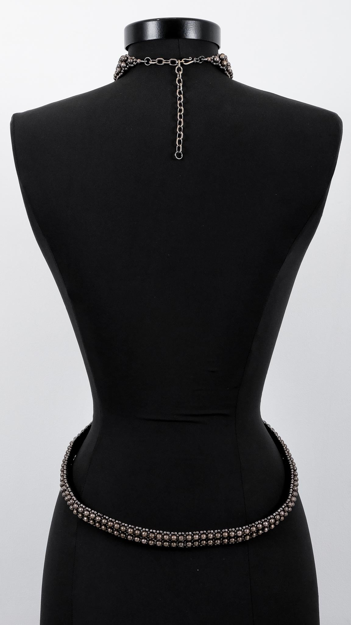 SPRINGSIOUX x OBJECT & DAWN - T CHOKER NECKLACE AND HARNESS, IN ANTIC SILVER