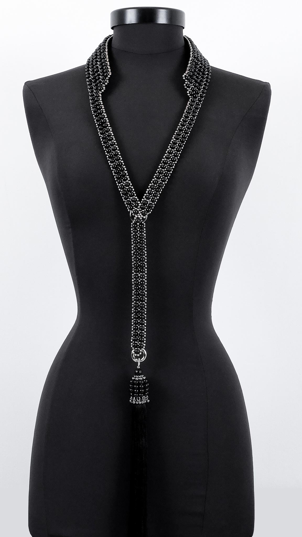 SPRINGSIOUX x OBJECT & DAWN - V NECK COLLAR STAND WITH REMOVABLE TASSEL, IN BLACK