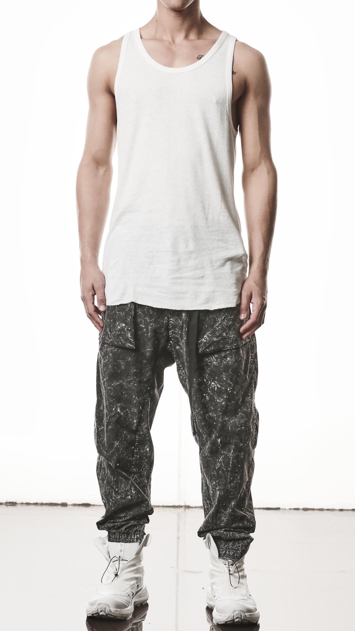 THOM KROM - LONG TANK TOP MTS 947, IN OFF WHITE