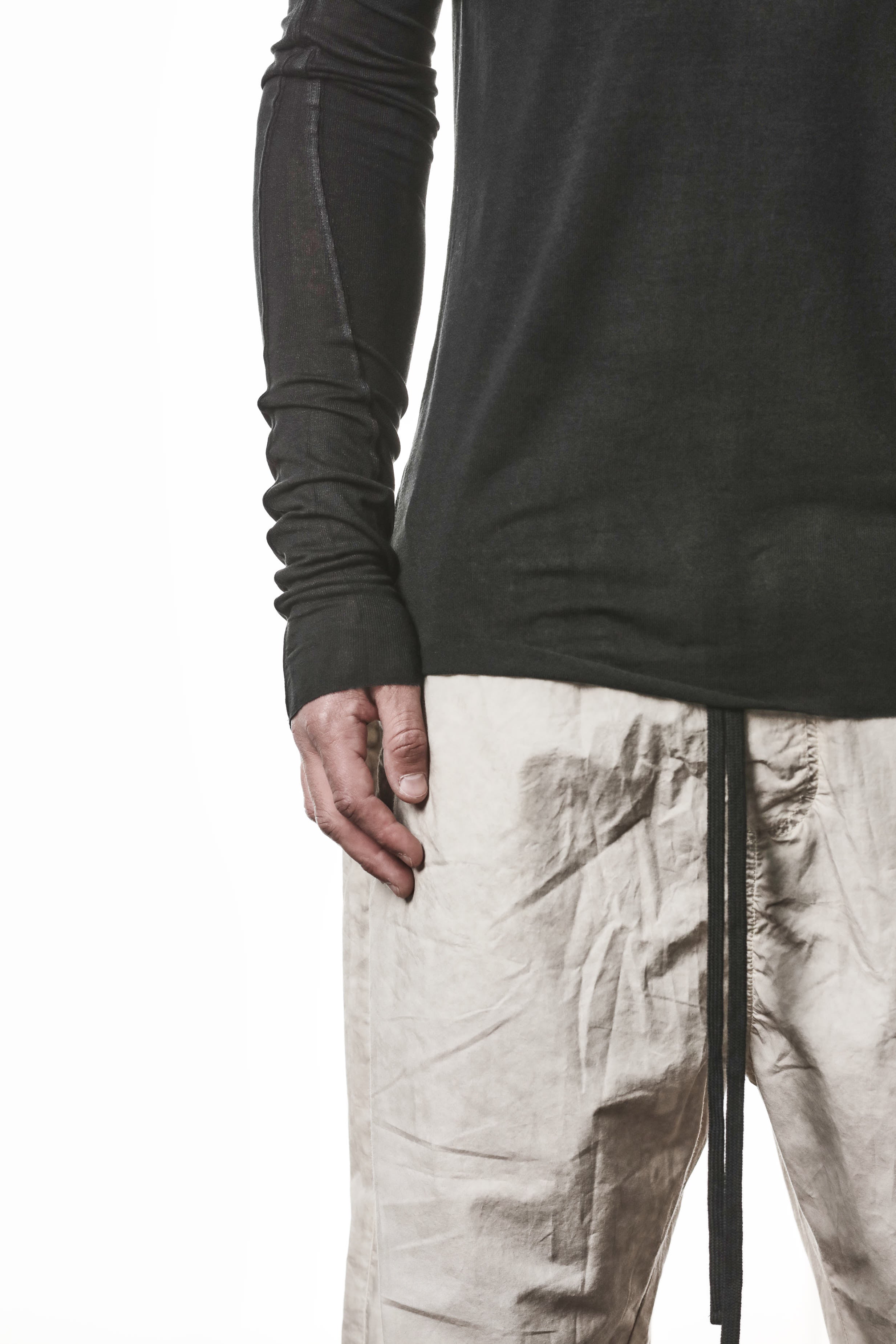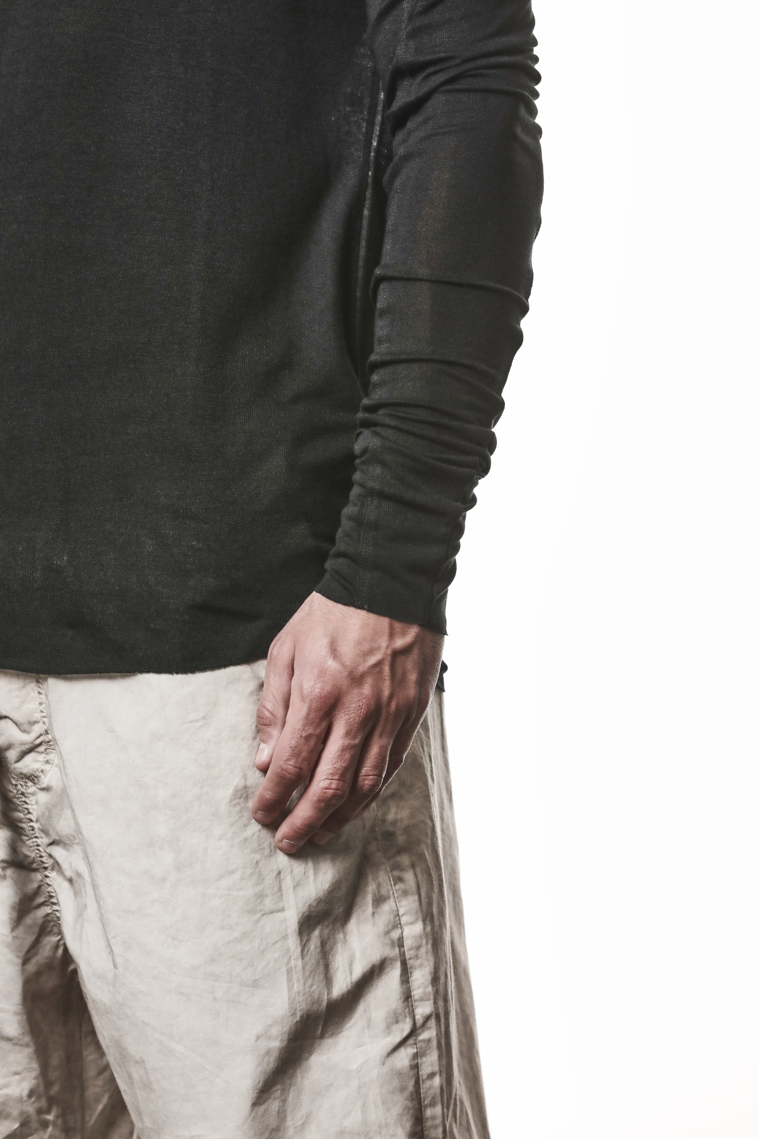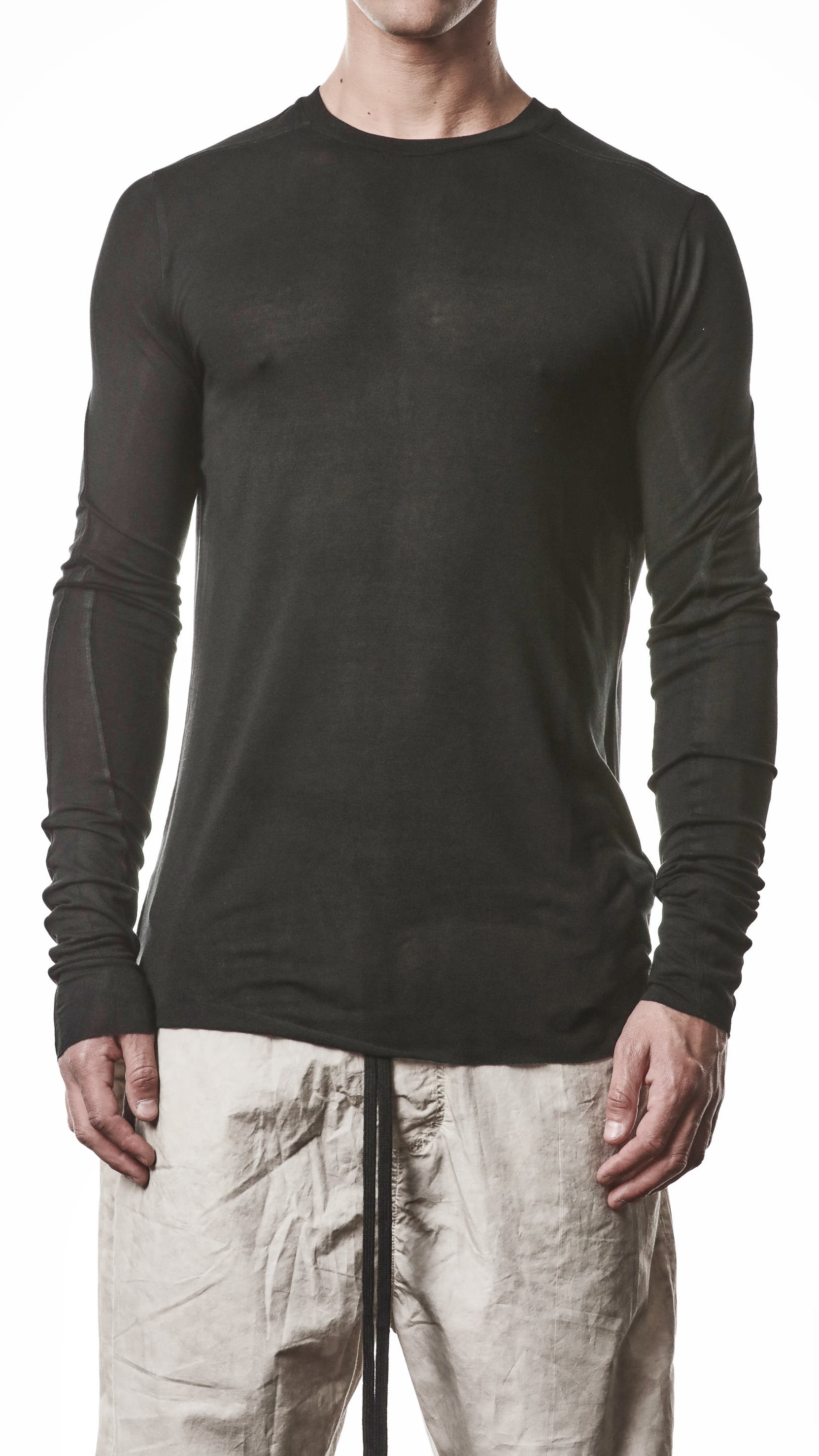 THOM KROM - ROUND NECK LONG SLEEVES TOP MTS 953, IN BLACK